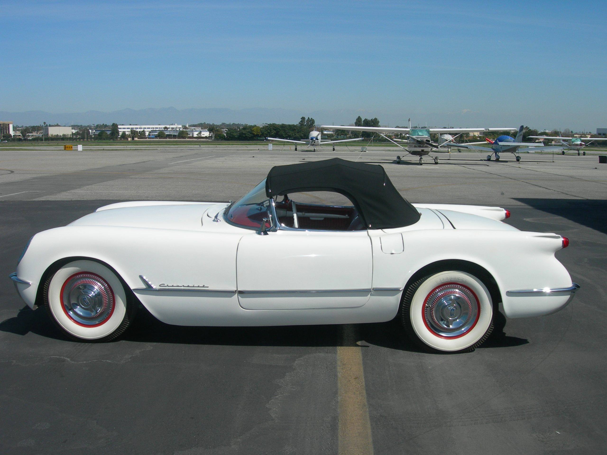 The Chevrolet introduced the Corvette in 1953 as “America’s sports car. The first Corvette (serial number E53F001001) reached the end of the assembly line on June 30, 1953. This was the first mass-produced fiberglass-bodied car, and all of the 300 cars built were assembled by hand in the back of a customer delivery garage in Flint, Michigan. All of the 1953 Corvettes were identical, with convertible bodies in polo white with sportsman red interior and black canvas top. The engine was the “Blue Flame” straight-six cylinder producing 150 horsepower, with triple Carter carburetors and 2-speed automatic transmissions.